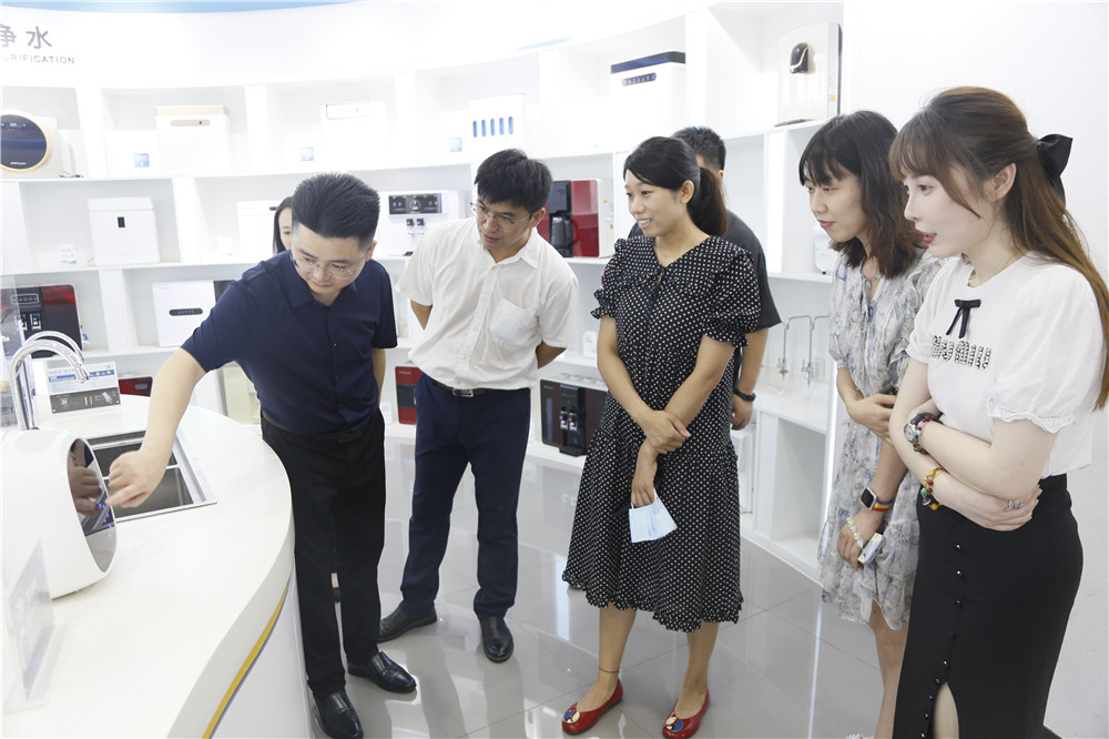 一行領(lǐng)導(dǎo)先后參觀了榮事達智能化生產(chǎn)車間和智慧水世界展廳,了解榮事達企業(yè)綜合實力及十大水處理產(chǎn)業(yè)具體發(fā)展狀況,現(xiàn)場體驗了企業(yè)最新研發(fā)定制產(chǎn)品與自主開發(fā)的物聯(lián)網(wǎng)校園智慧管理系統(tǒng),并為榮事達行業(yè)領(lǐng)先的技術(shù)實力點贊。