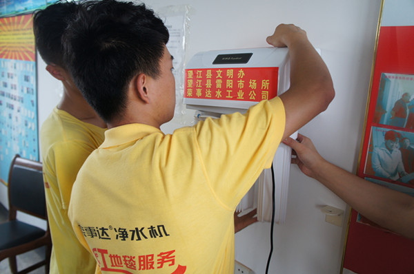 在捐贈活動當天,榮事達救災慰問團隊走進涼泉鄉敬老院、長嶺鎮金雞村、鴉灘鎮敬老院、賽口興龍小學、太慈鎮沈沖中心小學、雷池鄉敬老院、漳湖鎮高士中學等多個災民安置點,現場安裝榮事達凈水機。技術人員在進行安裝的同時,一邊向圍觀的領導和災民介紹機器的凈水原理及使用方法,許多災民在品嘗完凈水后,紛紛稱贊口感甘甜好喝,現制現飲十分方便。