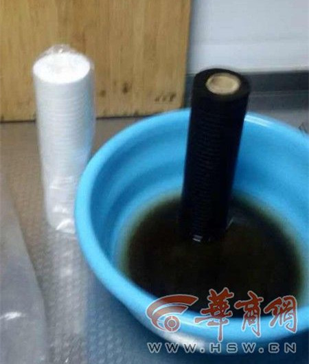 該小區(qū)多家住戶使用的是同一品牌的凈水器,該凈水器廠家一負責人解釋,凈水器都有前置濾芯和后置濾芯,一般都是建議6個月更換一次前置濾芯。“正常更換下來的顏色應該是微微發(fā)黃或鐵銹紅。”該負責人說,但小楊家的前置濾芯更換下來卻是黑巧克力色,而且摸上去是油泥狀的物質。
