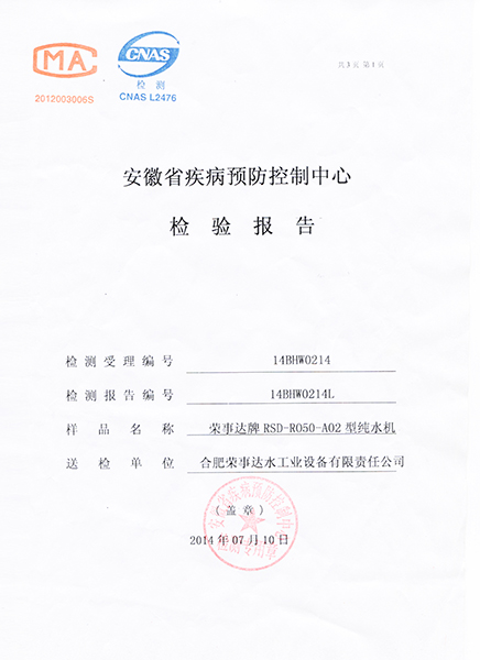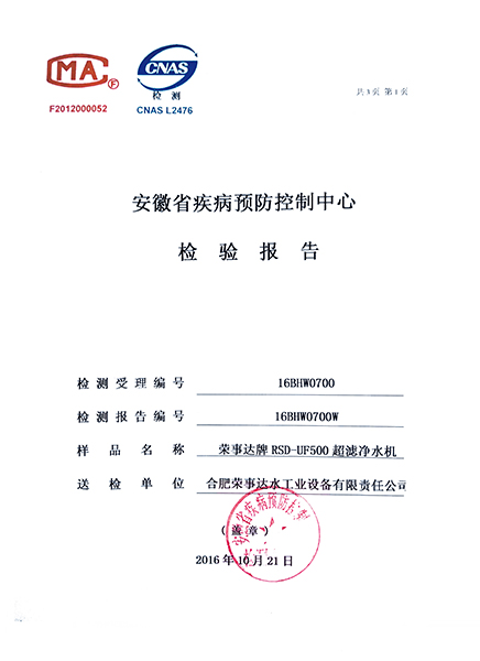 RSD-UF500超濾凈水機(jī)檢驗(yàn)報(bào)告...