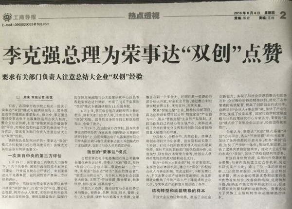 • 李克強總理為榮事達“雙創(chuàng)”點贊