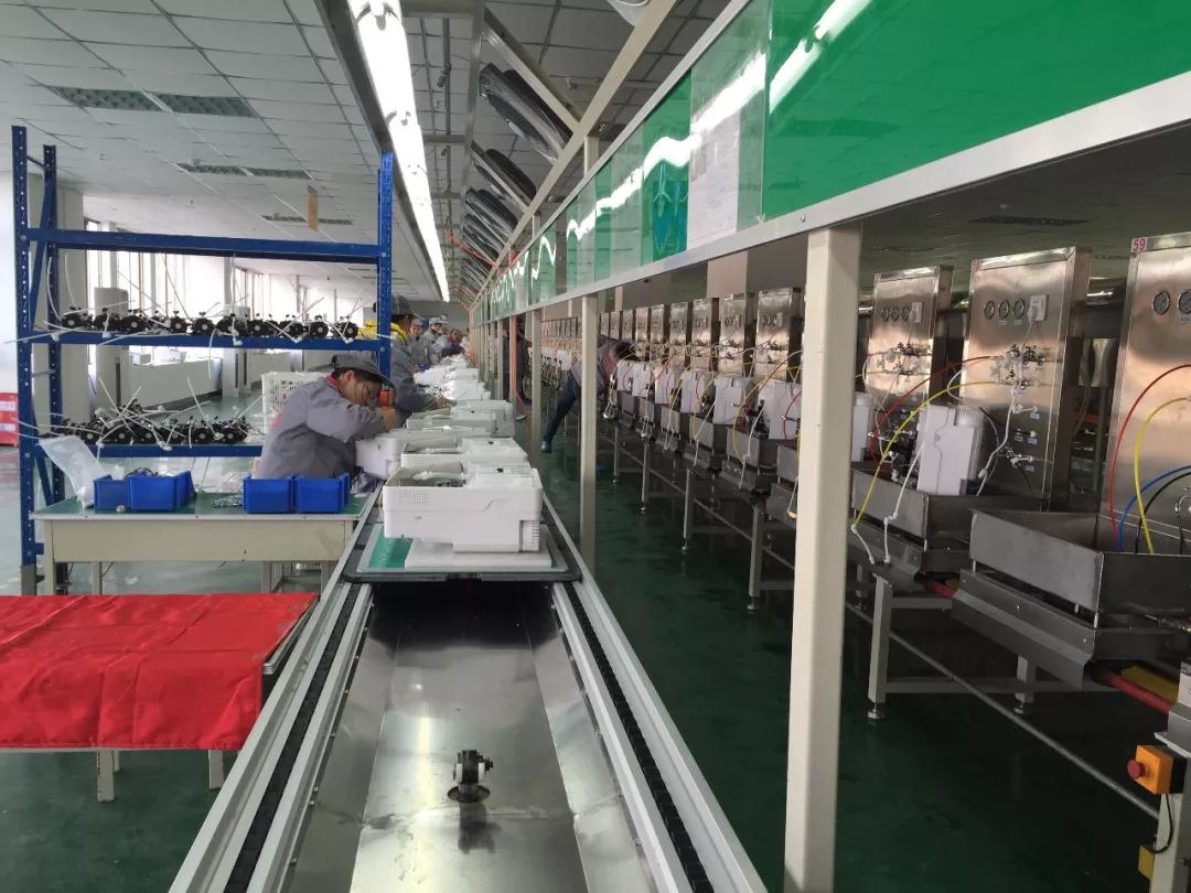 無塵車間內配備的國內先進的凈水機自動化生產線正處于工作狀態,可編程控制器(PLC)自動、轉向、垂直升降輸送產品;自動倍速鏈輸送,節拍控制,大幅提高了生產效率。榮事達凈水器生產線日產能是一般生產線的3到4倍,在高速運作的生產線上,工人們或迅速熟練地安裝產品零配件;或聚精會神地檢查儀表數值;或仔細認真地核查包裝箱內物品是否齊全,在注重生產效率的同時嚴把產品質量關,對每一個生產環節的操作都一絲不茍,力求實現產能、品質的雙豐收。