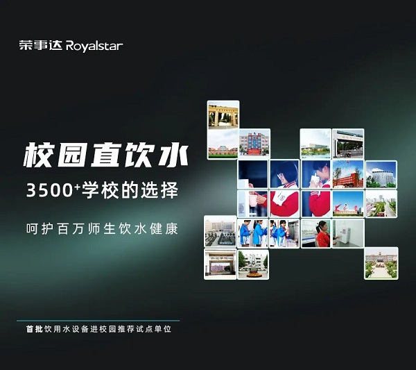 榮事達水工業長期以來一直致力于校園直飲水工程建設,根據校園人數、飲水特征、水路布局等定制施工,在校園的教學樓、辦公樓、食堂等地全面投放設備,憑借新設計、新模式、新服務等領航業界,不僅被國家教育部校園飲水工作組多次評估、調研,還在多項大型校園直飲水工程投標中脫穎而出。