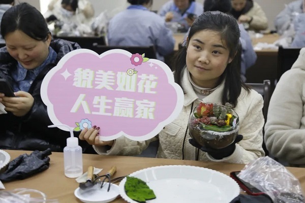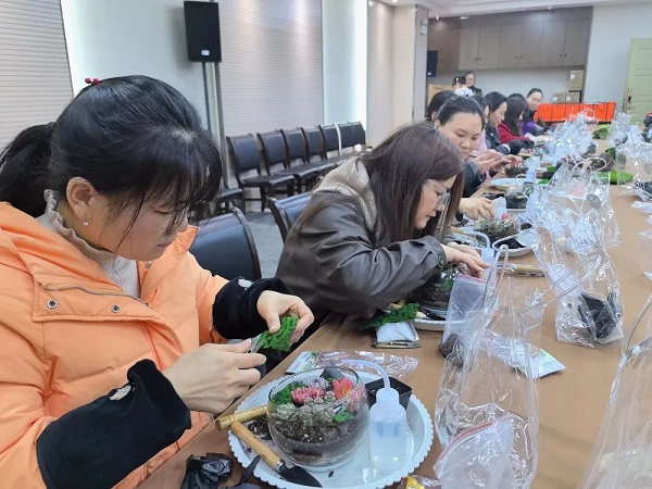 在DIY過程中,大家互相交流、分享心得,笑聲和談話聲此起彼伏。有的女神選擇了簡約風格,將多肉植物種植在小巧精致的花盆里,展現出一種清新脫俗的美;有的則選擇了色彩豐富的搭配,將不同顏色的多肉組合在一起,創造出一幅幅生動的畫面。
