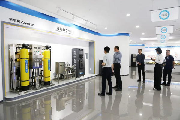 此次考察,特別聚焦于集團(tuán)順應(yīng)新基建趨勢,結(jié)合物聯(lián)網(wǎng)、大數(shù)據(jù)和云計算技術(shù),首創(chuàng)的社區(qū)智能凈水工廠項目,領(lǐng)導(dǎo)一行全面而深入地了解智能凈水工廠在社區(qū)新場景下的設(shè)計思路、工程建設(shè)、運營策略以及合作模式等。從設(shè)備的智能制造,到直飲水工藝流程的精細(xì)管理,再到智能管理平臺的高效運營,這一系列環(huán)節(jié)構(gòu)成了集團(tuán)所打造的一體化、全方位、智能化的凈水產(chǎn)業(yè)鏈。項目凸顯了集團(tuán)在新質(zhì)生產(chǎn)力背景下所做出的創(chuàng)新突破,致力于追求可持續(xù)的高品質(zhì)發(fā)展新方向。