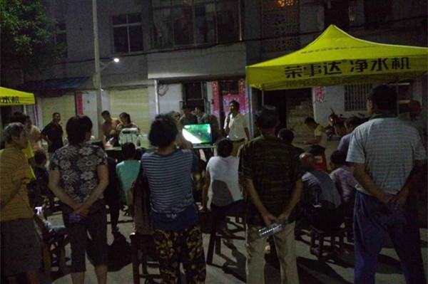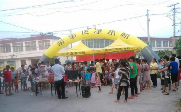 在天津、山西省份的鄉鎮市場,代理商通過舉辦精彩的文藝演出來獲得當地居民關注,歡快的舞蹈、幽默的小品豐富了廣大居民的日常生活,吸引了大批居民駐足觀看。人氣爆棚的活動現場、持續高漲的關注度、輕松愉快的氛圍為凈水推廣活動提供了良好的環境。