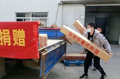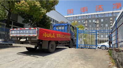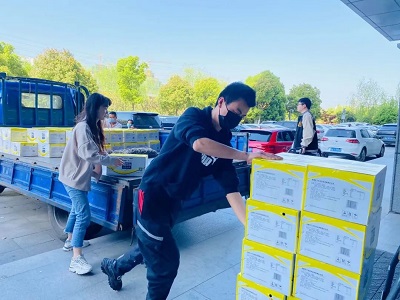 4月8日榮事達(dá)水工業(yè)集團(tuán)工作人員以最快的速度進(jìn)行物資的裝載,滿載著抗疫物資,發(fā)往37℃的愛(ài)活動(dòng)統(tǒng)籌處。